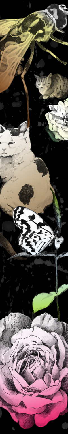 コンペ応募用に作った作品。ペンと鉛筆で描いたものをスキャンして、PCで着色し配置。