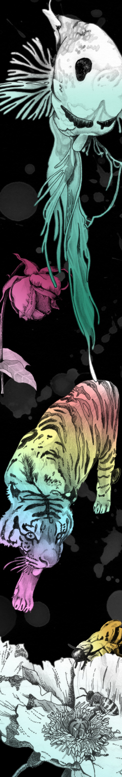 コンペ応募用に作った作品。ペンと鉛筆で描いたものをスキャンして、PCで着色し配置。