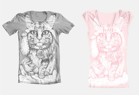 日本の招き猫が「メインクイーン」になりました。 なんかちょっと変な感じ。 その変な感じを、そのままTシャツにしました。