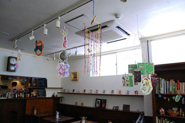 茅ヶ崎にあるちいさくて可愛い「すずの木カフェ」にて、動物をテーマに展示をしました。動物と人、さらに植物もいっしょにカフェを楽しく彩りました。