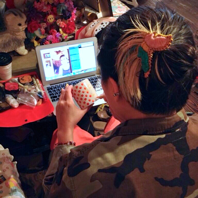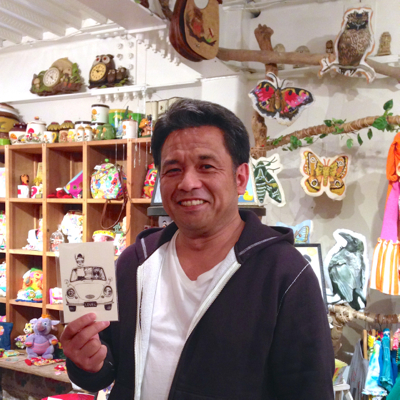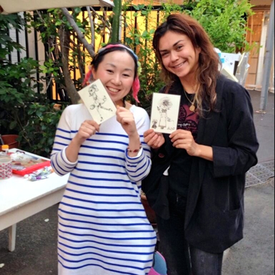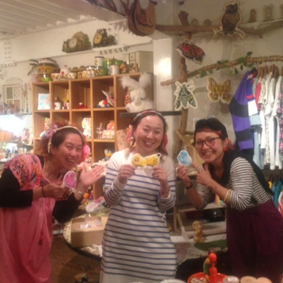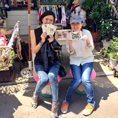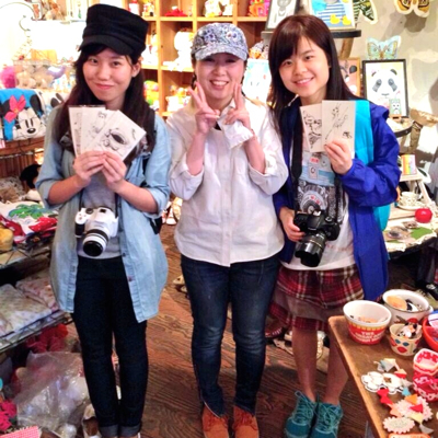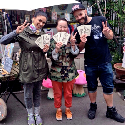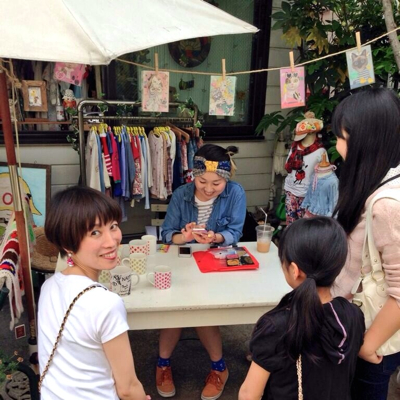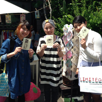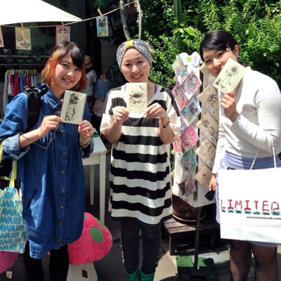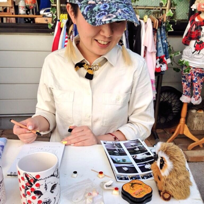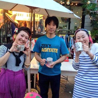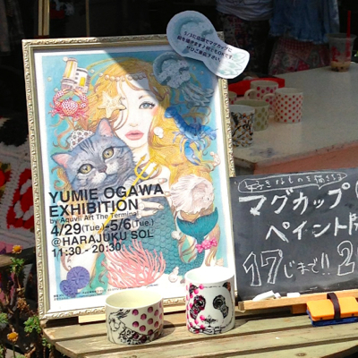 ポスターを作ってみました。夏っぽい原宿っぽいイメージです。展示中、店頭でマグカップペイントをしました。