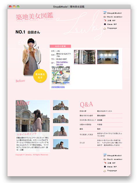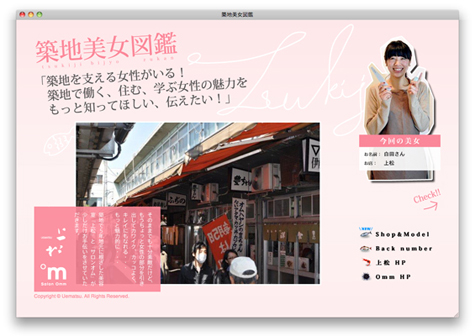 『上松』の地域密着プロジェクト『築地美女図鑑』のウェブサイトを制作しました。