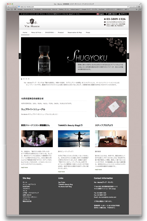 オールハンドトリートメントで、エステ・ダイエット・アンチエイジング専門のプライベートサロン 『Via・Monte (ヴィア・モンテ)』のウェブサイトのデザインを担当しました。