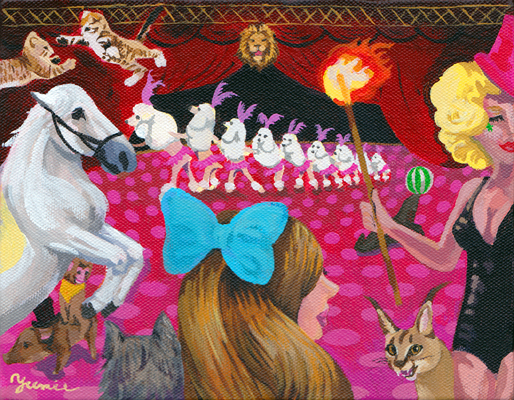 『green CIRCUS 』 展用に制作した作品。動物たちがたくさんいるサーカスのシーンを描いてみました。