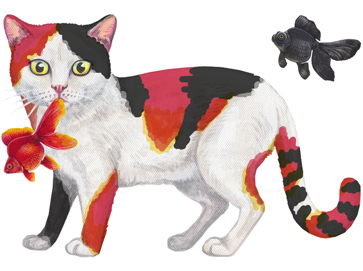 金魚みたいな柄の猫を描きたくて、描いてみました。
