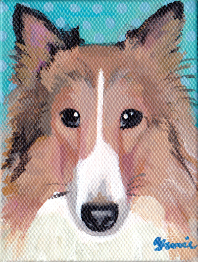 もう一枚の絵と一緒に注文を頂いたので、2つ並んで飾るのをイメージして色違いのドット柄にしました。