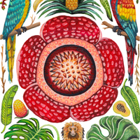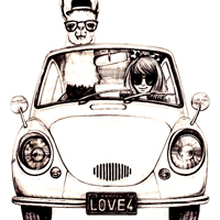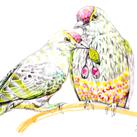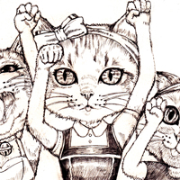 基本的には手描きで、ペンや鉛筆を使用した作品など。